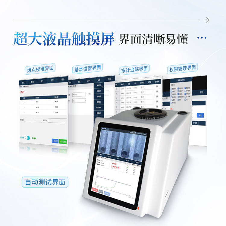 全自动熔点仪完美结合高精度控温技术和高清视频摄像技术,不但为用户提供准确、稳定、可靠的测试结果,还为用户带来高效便捷的测试感受。高清视频可方便清晰的看到样品熔化的全过程,自动检测实时图谱显示,方便用户准确测得样品熔点和熔距。